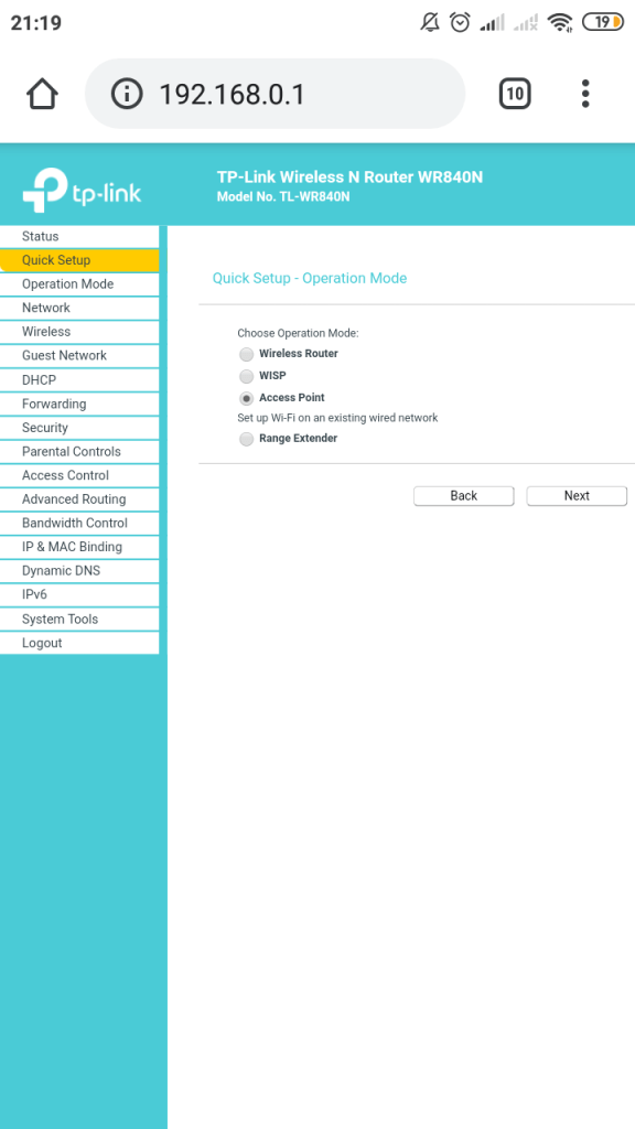 STEP 9 : Kemudian di menu Operaton Mode pilih Access Point dan klik Next untuk lanjut.