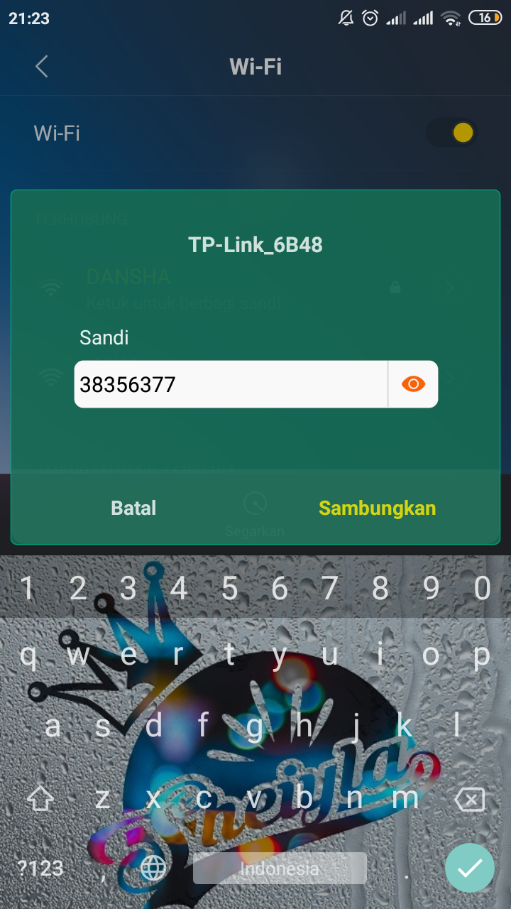STEP 4: Konek dengan memasukan password yang tertera di device. Klik sambungkan untuk konek.