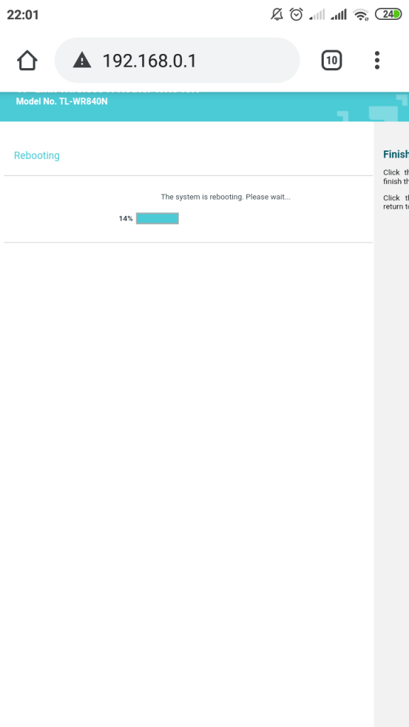 STEP 12 : Masuk ke Review Setting (Di situ akan terlihat informasi konfigurasi yang sudah kita lakukan). Klik Finish untuk menyimpan konfigurasi dan otomatis Device AP yang sudah kita setup akan diRebooting,tunggu sampai loading 100% selesai.