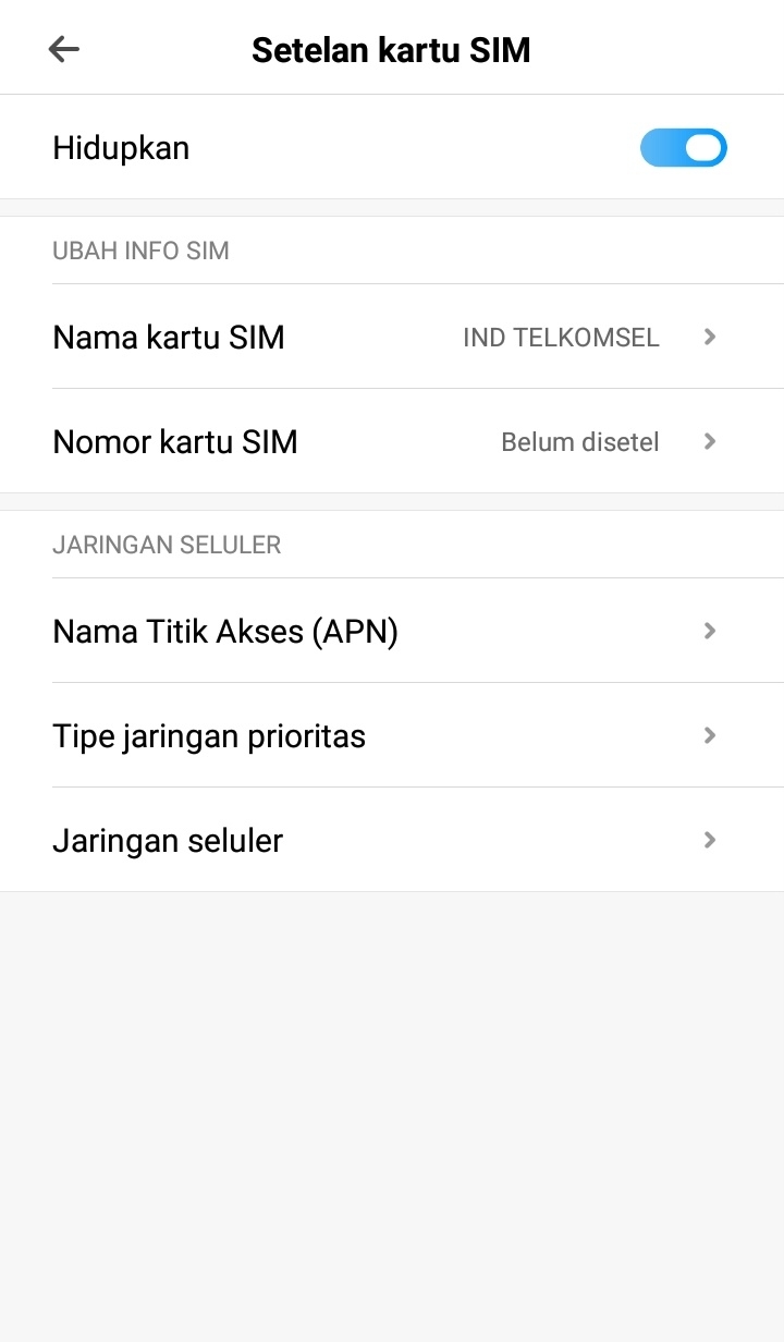 Setelah masuk ke menu Kartu SIM & jaringan selular, selanjutnya pada menu kartu telkomsel atau IDN TELKOMSEL.