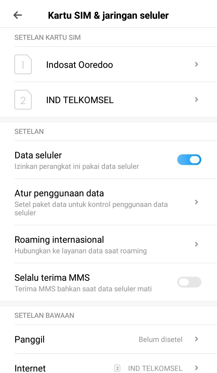 Buka Setelan/pengaturan di hp kalian. Setelah itu klik menu Kartu SIM & jaringan seluer. Setiap Hp menunya pasti berbeda-beda, intinya cari saja menu pengaturan kartu SIM kalian (Hp yang saya gunakan Xiaomi 4A. Ini bukan sponsor ya wkwk)