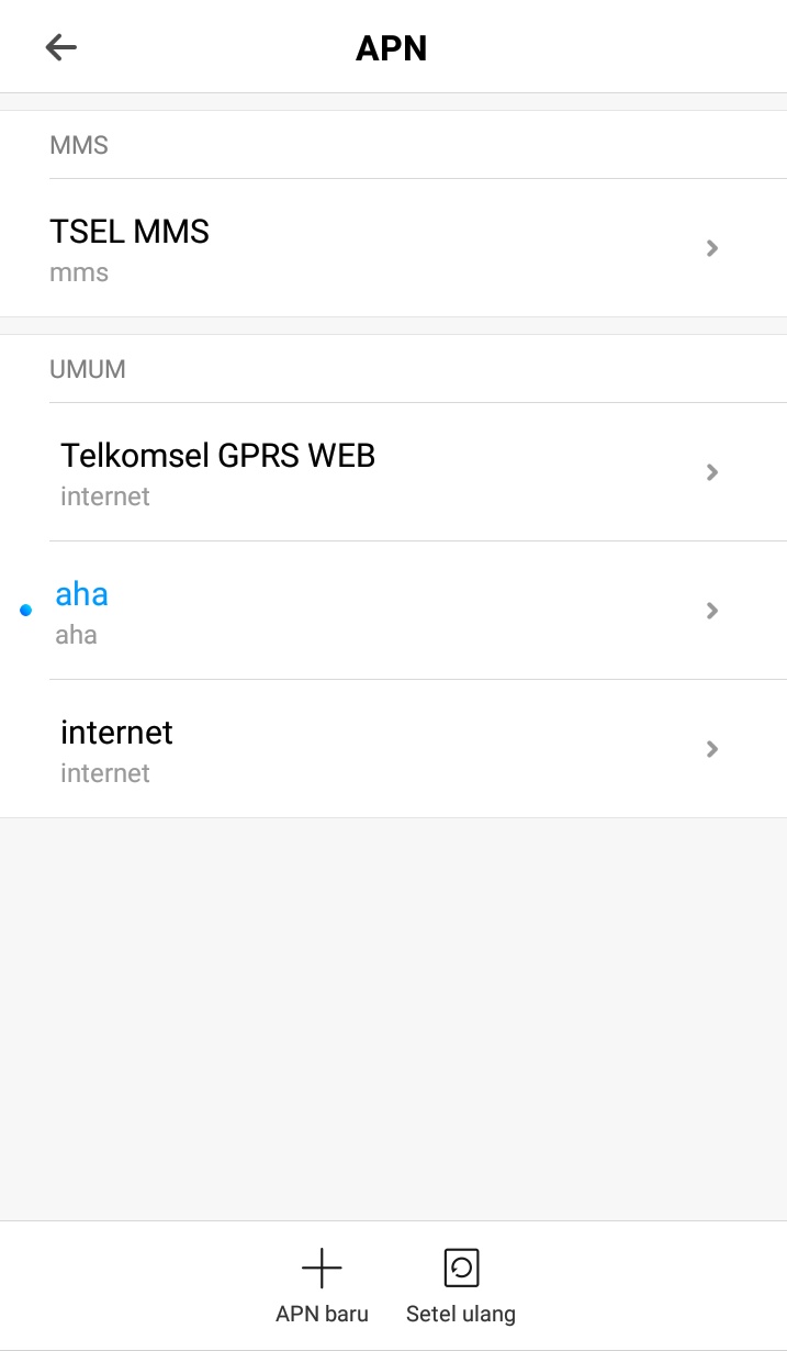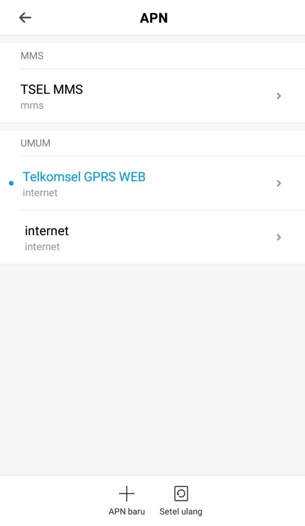 Selanjutnya pilih menu Nama Titik Akses (APN)