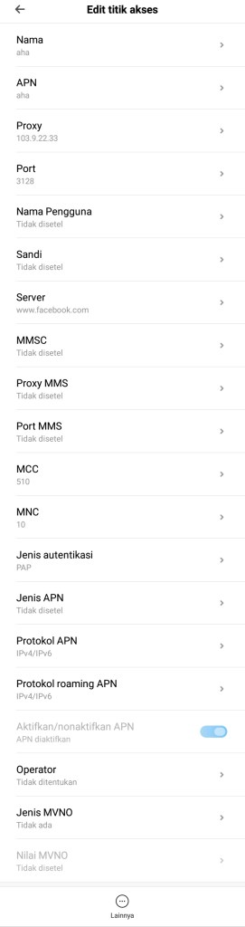 Klik menu Tambah APN dan isi datanya seperti berikut.